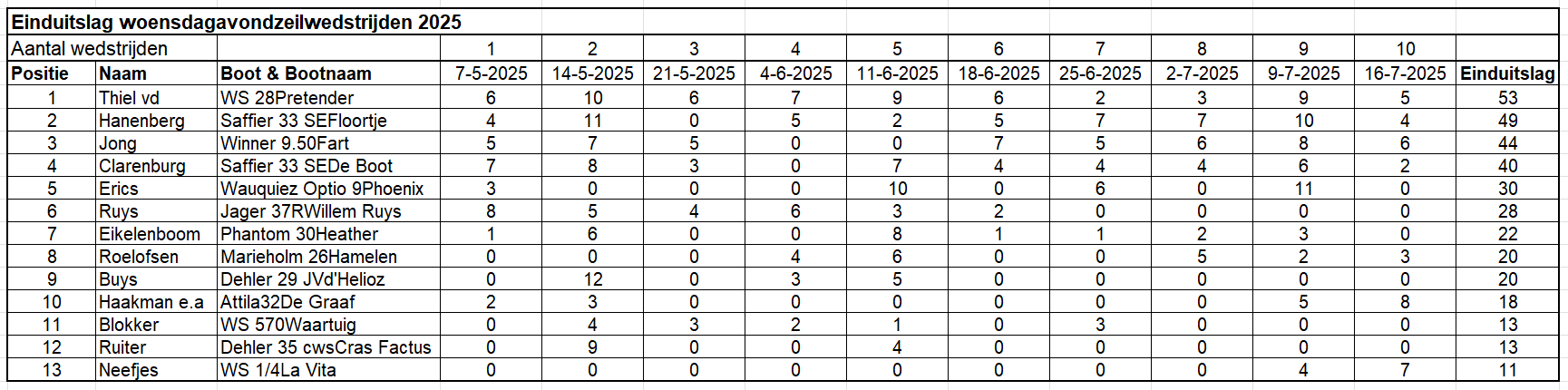 Kijk hier voor de uitslagen van alle zeilwedstrijden in 2025.